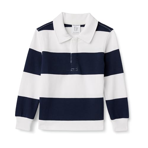 Amazon Essentials Boys' Rugby Polo Shirt, Navy White Rugby Stripe, 6-7 Years