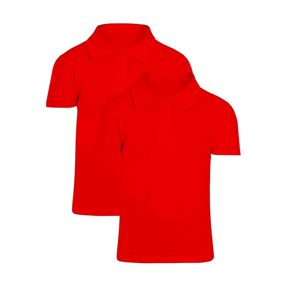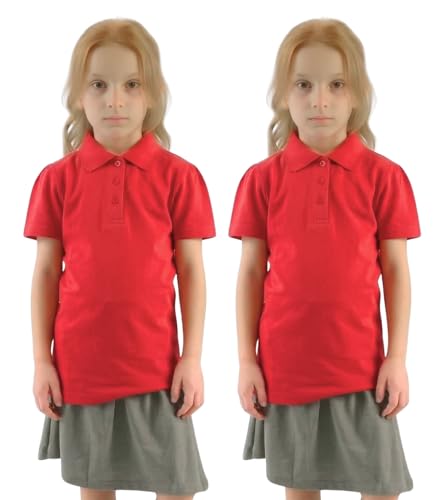 GW CLASSY OUTFIT 2X Girls Polo Shirts (Pack of 2) Short Sleeve Girls School Uniform Polo T-Shirts PE Tops 4-13 Years (6-7 Years, 2X Red)