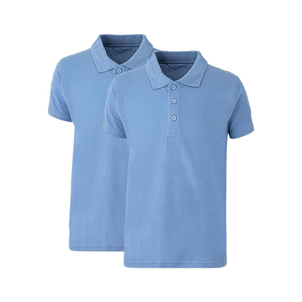 (6-7 Years, 2 Pack Sky Blue) Panzy 2 or 4 Pack School Boys Girls Unisex Kids Quality White Short Sleeve Polo T-Shirt Age 3-9 yrs