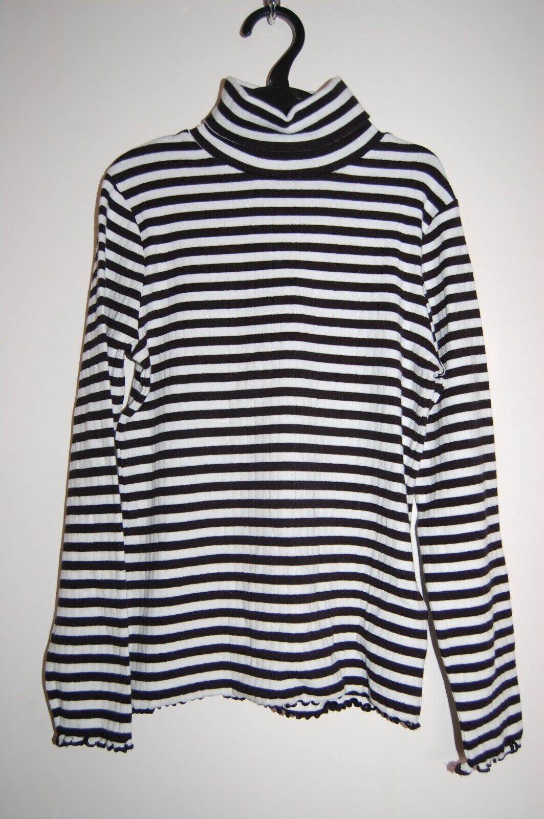 M&S Striped Polo Neck Jumper Cotton Rich Black & White Age 6-7 Years BNWT
