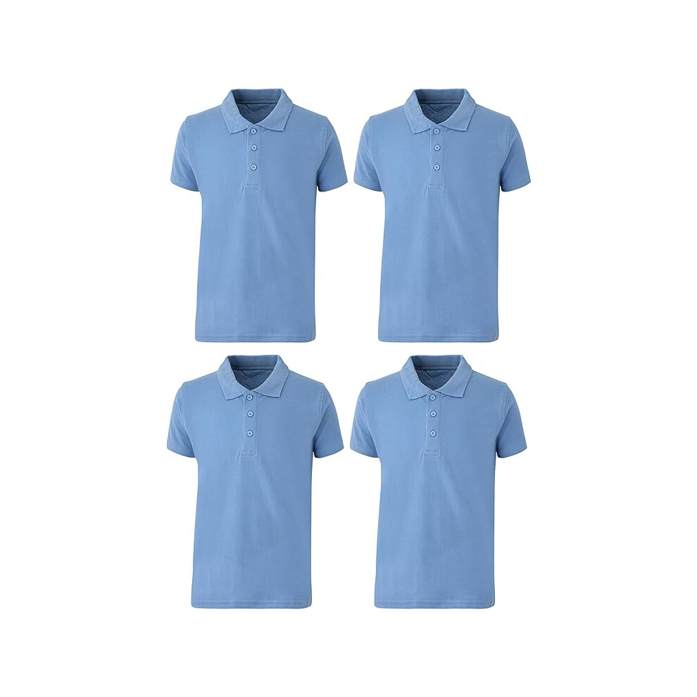 (6-7 Years, 4 Pack Sky Blue) Panzy 2 or 4 Pack School Boys Girls Unisex Kids Quality White Short Sleeve Polo T-Shirt Age 3-9 yrs