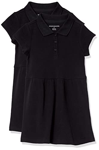 Amazon Essentials Girls' Short-Sleeve Pique Polo Dress, Pack of 2, Black, 6-7 Years