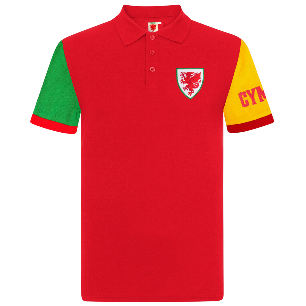 (6-7 Years) Wales Cymru Boys Polo Shirt Contrast Sleeve Kids FAW Official Football Gift
