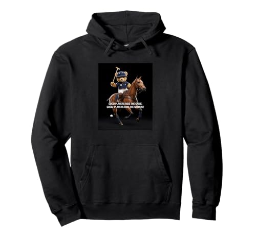 Cool Teddy Bear Playing Horse Polo Game Illustration Graphic Pullover Hoodie