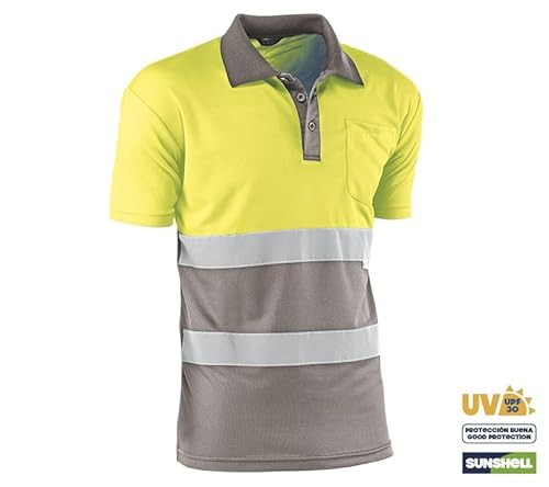 Juba 100% Polyester Short-Sleeved Polo Shirt, 140 g/m2, with Reflective Stripes, Fluorescent Yellow/Gray, Size S