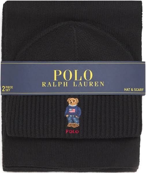 Ralph Lauren Polo Flag Bear 🐻 Wool SCARF Black HAT beanie 2 Piece Gift Set