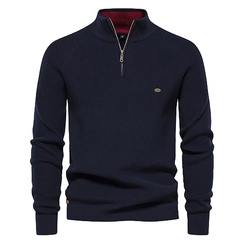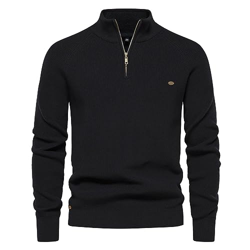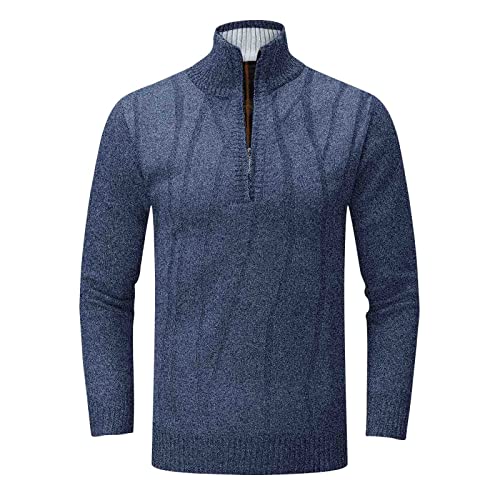 Mens Quarter Zip Pullover, Jumper Men Zip Tops Winter Warm Knit Polo Neck Jumper Long Sleeve Soft Cozy Turtle Neck Turtle Neck Tops for Men Work Jumper for Men Mens Half Zip Jumpers Winterpullover