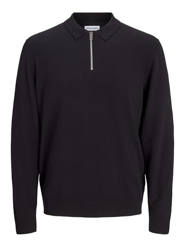 JACK & JONES Men's Jjeemil Knit Polo Half Zip Ls Noos Jumper, Black, X-Small