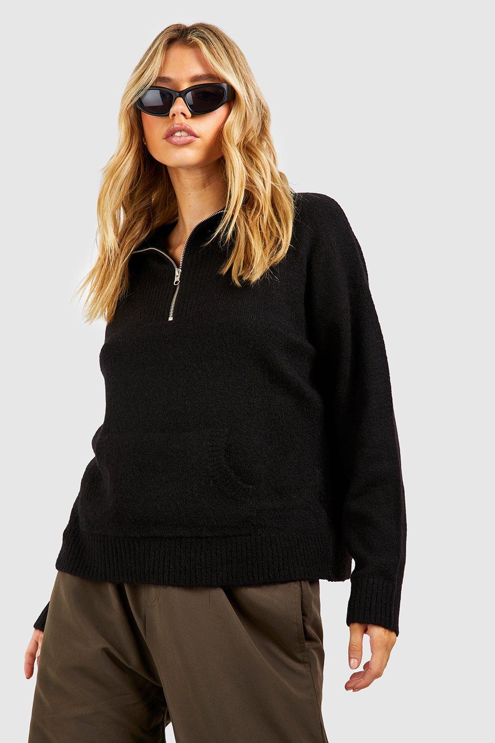 Zig Zag Stitch Half Zip Polo Collar Jumper