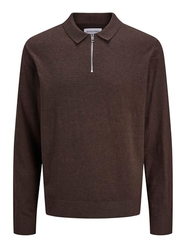 JACK & JONES Men's Jjeemil Knit Polo Half Zip Ls Noos, Mulch, XL