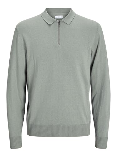 JACK & JONES Men's Jjeemil Knit Polo Half Zip Ls Noos Jumper, Iceberg Green, L