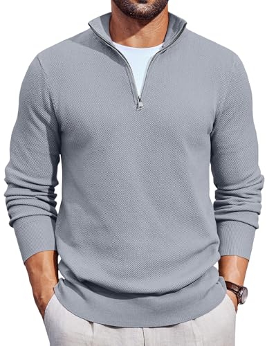 COOFANDY Mens Sweater 1/4 Zip Jumpers Polo Neck Jumpers Half Zip Jumper Turtle Neck Pullover Business Casual Sweater Winter Jumper Warm Light Grey L