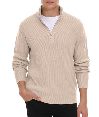 Hisir Men's Jumpers 1/4 Zip Tops Winter Warm Knit Polo Neck Jumper Long Sleeve Soft Cozy Turtle Neck Quarter Zip Knitwear Pullover Sweaters for Men (10 Beige, M)