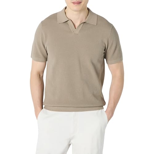 Amazon Essentials Men's Regular-Fit Short-Sleeved Knit Polo Jumper, Mushroom Brown, L