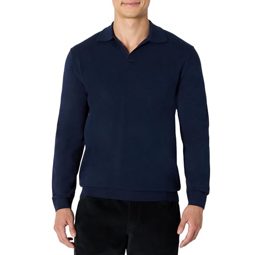 Amazon Essentials Men's Long Sleeve Regular Fit Knit Polo Jumper, Navy, L