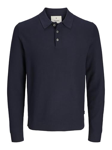 JACK & JONES Men's Jprblusandri Knit Polo Ls Jumper, Night Sky, S