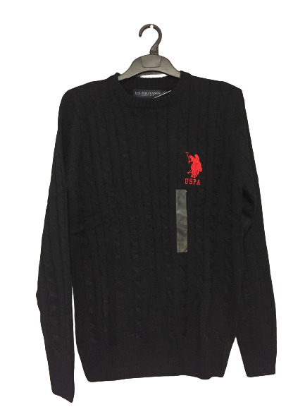 U.S. Polo Assn. Cable Knit Jumper Black Size Large DH011 QQ 09