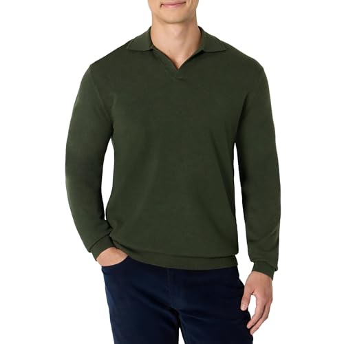 Amazon Essentials Men's Long Sleeve Regular Fit Knit Polo Jumper, Dark Olive, L