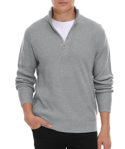 Hisir Men's Jumpers 1/4 Zip Tops Winter Warm Knit Polo Neck Jumper Long Sleeve Soft Cozy Turtle Neck Quarter Zip Knitwear Pullover Sweaters for Men (09 Grey, L)