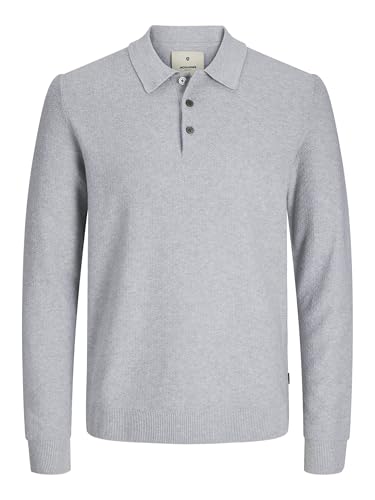 JACK & JONES Men's Jprblusandri Knit Polo Ls Jumper, Light Grey Mix, M