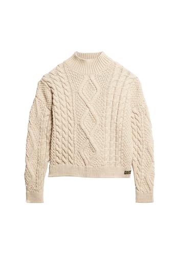 Superdry Aran Cable Knit Polo Jumper W6110547A Ecru Size 14, Ecru, UK 14