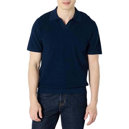 Amazon Essentials Men's Regular-Fit Short-Sleeved Knit Polo Jumper, Navy, M