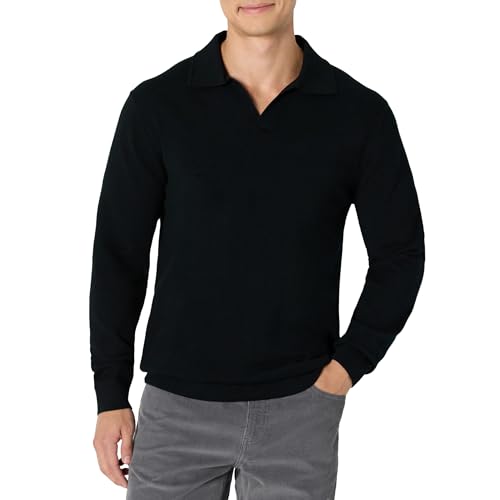 Amazon Essentials Men's Long Sleeve Regular Fit Knit Polo Jumper, Black, S
