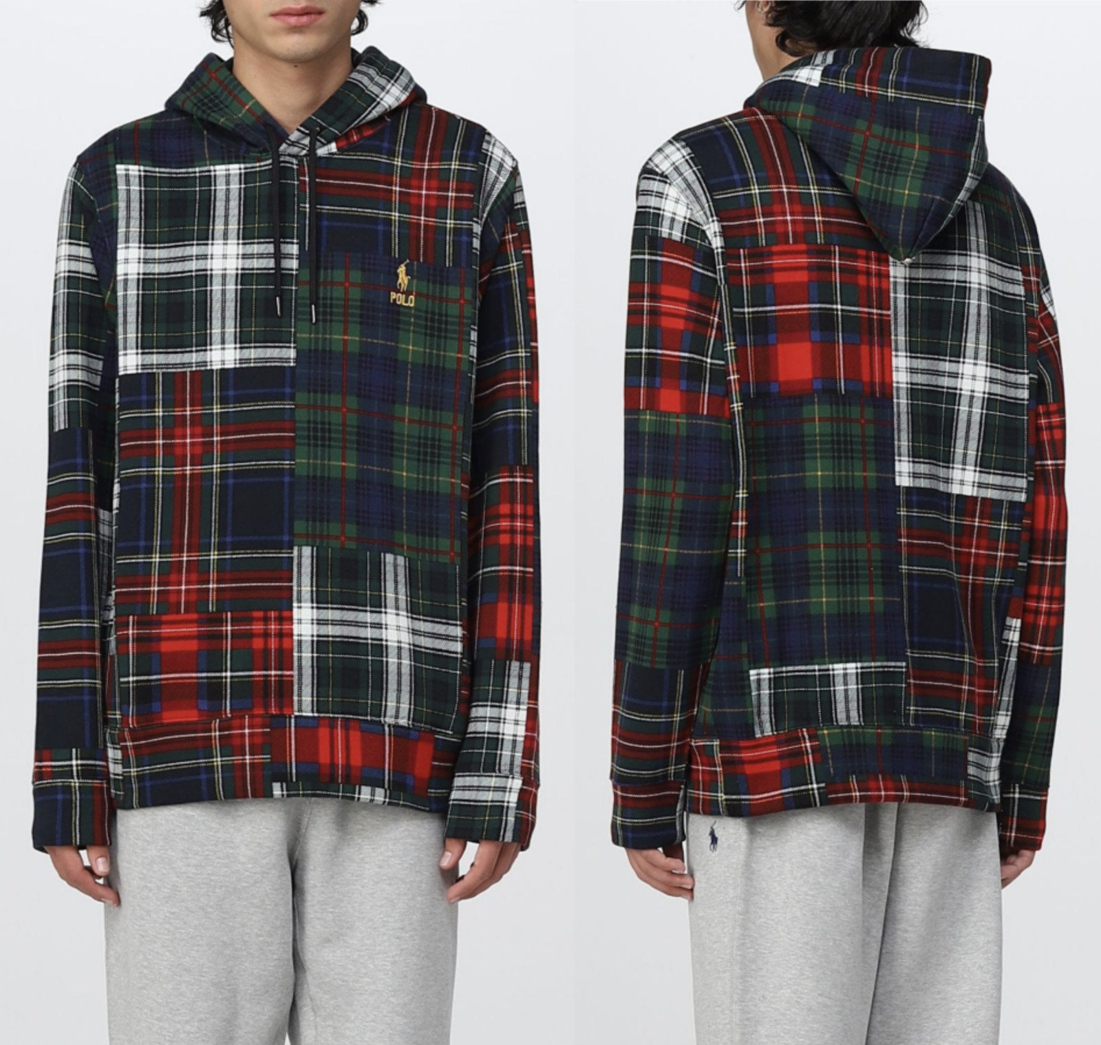 Polo Ralph Lauren Patchwork Hoodie Check Jacket Sweater Sweatshirt Hood Jacket S
