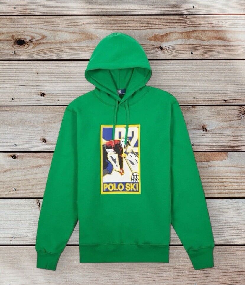 Polo Ralph Lauren Ski 92 Graphic Fleece Pullover Hoodie Green XL RRP £179