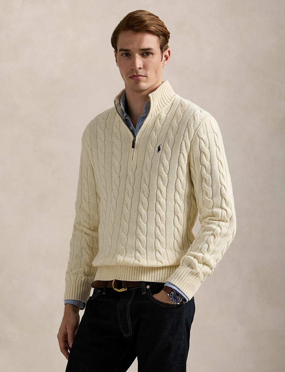 Polo Ralph Lauren Half Zip Cable Jumper Grey Large For Men
