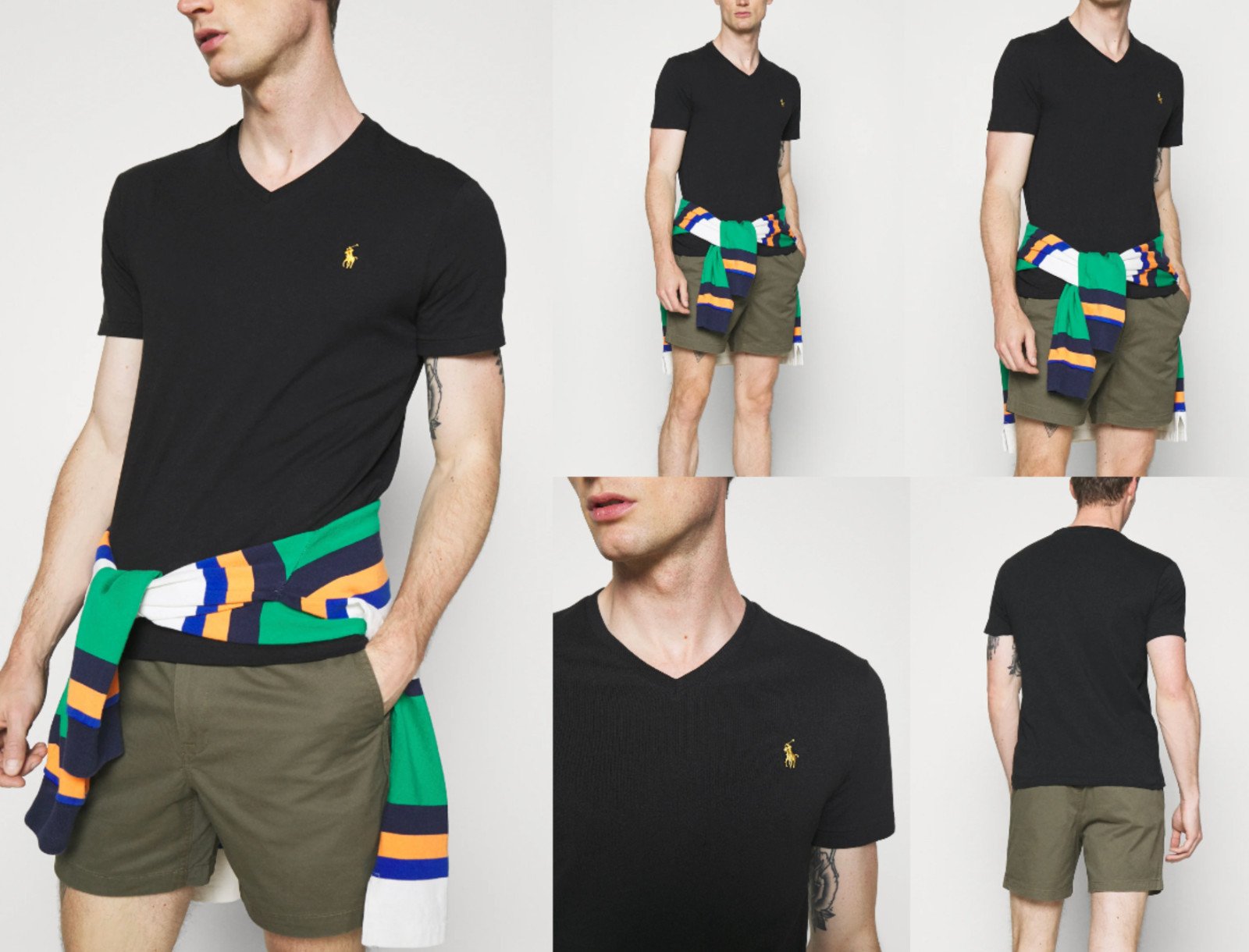 Polo Ralph Lauren V Neck T-shirt Black Shirt Custom Slim Fit Tee Top Gold Pony S