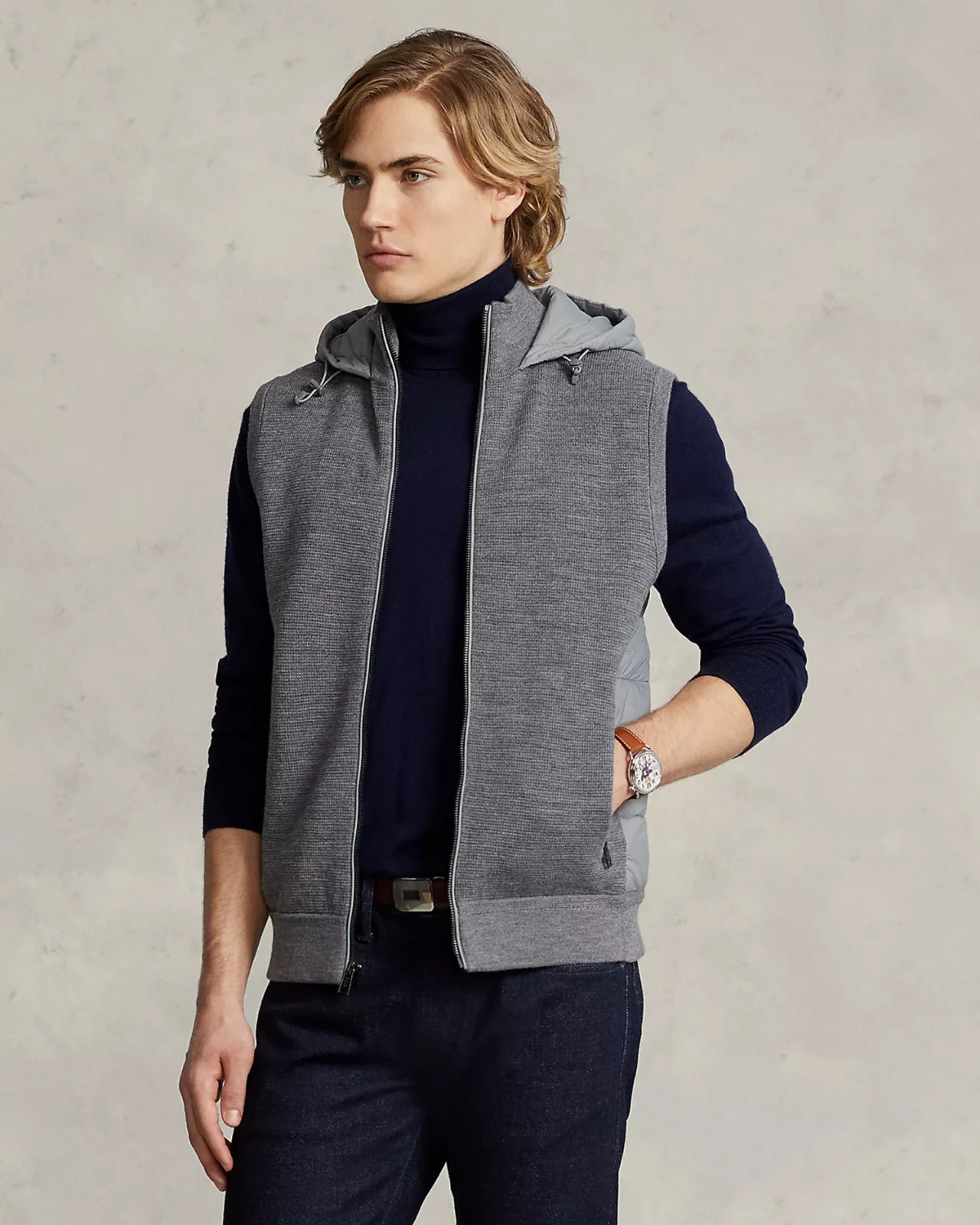Polo Ralph Lauren Wool Hybrid Full Zip Hooded Sweater Vest Bodywarmer L