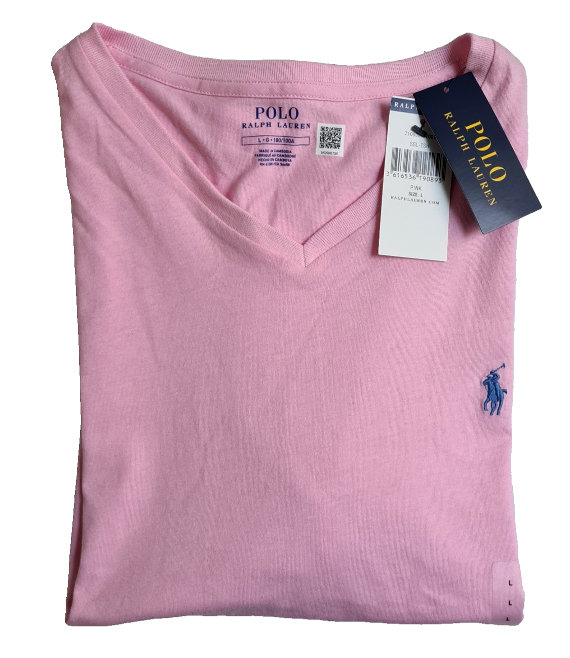 POLO RALPH LAUREN V-NECK T-SHIRT PINK CHEST LOGO SIZE L