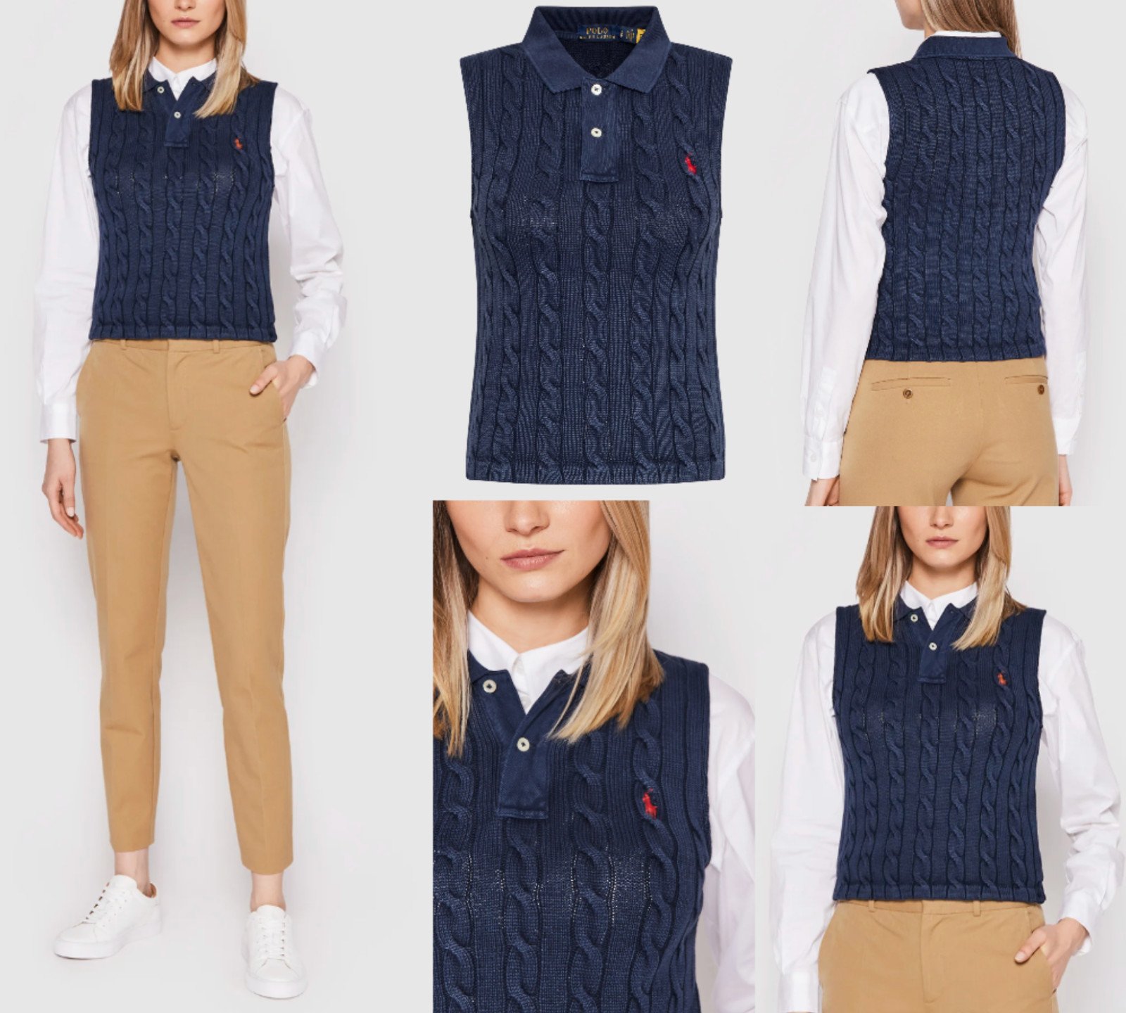 Polo Ralph Lauren Cropped Cable Knit Polo Shirt Braided Pullover Jumper XS