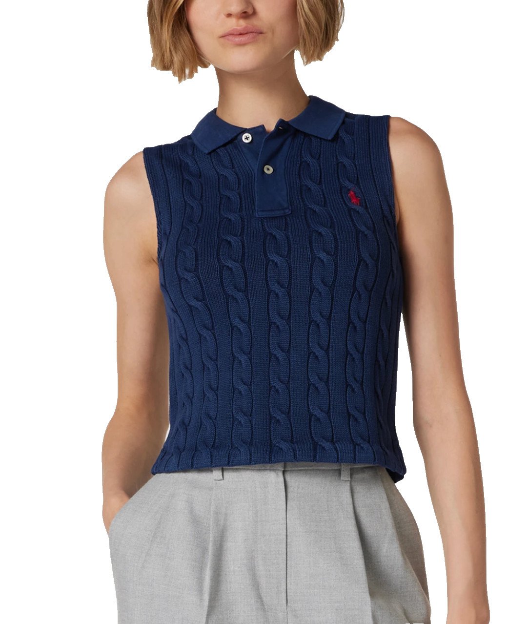 Polo Ralph Lauren Cropped Cable Knit Polo Shirt Braided Pullover Jumper S