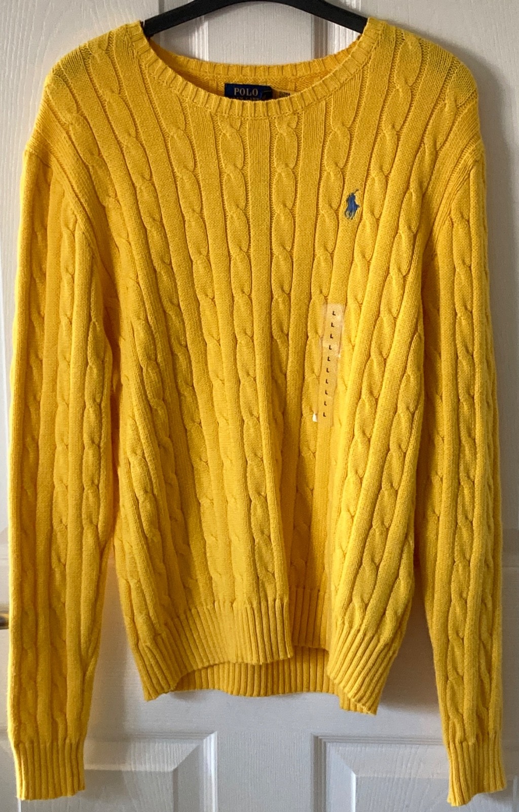 Polo Ralph Lauren Jumper Womens Large 40" Yellow 100% Cotton Cable Knit Pullover