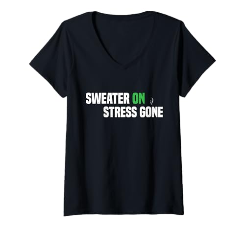 Womens Cozy Stress Relief Winter Tee | Sweater On Stress Gone V-Neck T-Shirt