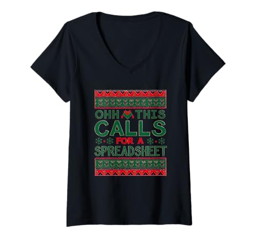 Womens Oh This Calls for, a Spreadsheet Christmas Sweater Design V-Neck T-Shirt