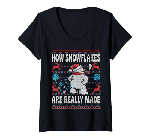 Womens How Snowflakes are Really Made Funny Kids Ugly Sweater V-Neck T-Shirt