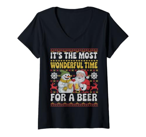 Womens Funny Beer Christmas Sweater It’s The Most Wonderful Time V-Neck T-Shirt