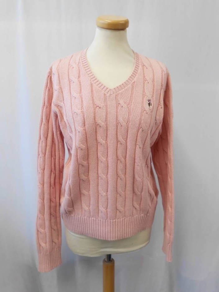U.s Polo Assn Cable-knit Sweater V-neck Cut Silver Pink Size: L