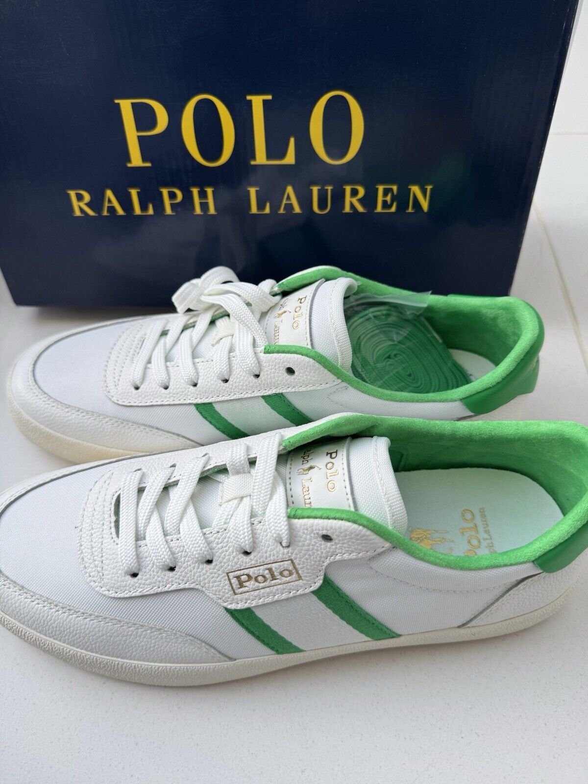 New Mens Polo Ralph Lauren White Green Court VLC Sneakers Trainers UK M7,41