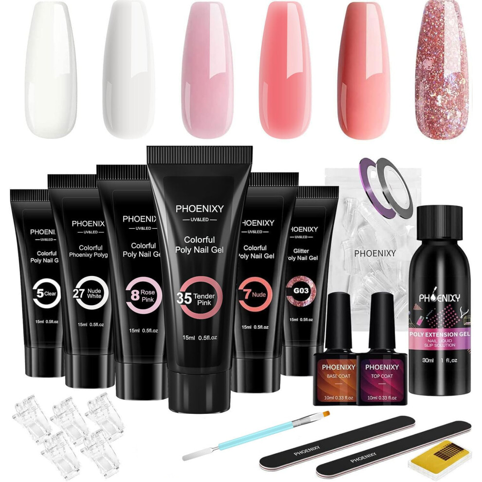 Phoenixy Poly Nail Gel Kit, 6 Colour Poly Nail Gels Set 15ML Clear Nude Pink Builder Nails Gel Nail Extension Basic Gifts Kits for Women