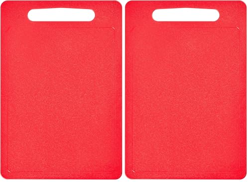 Chef Aid Red Poly Chopping Board, Multipurpose Anti-Slip Surface, Easy Clean and Dishwasher Safe with Handle, 35 x 25cm, Other Colour Options Available (Pack of 2)