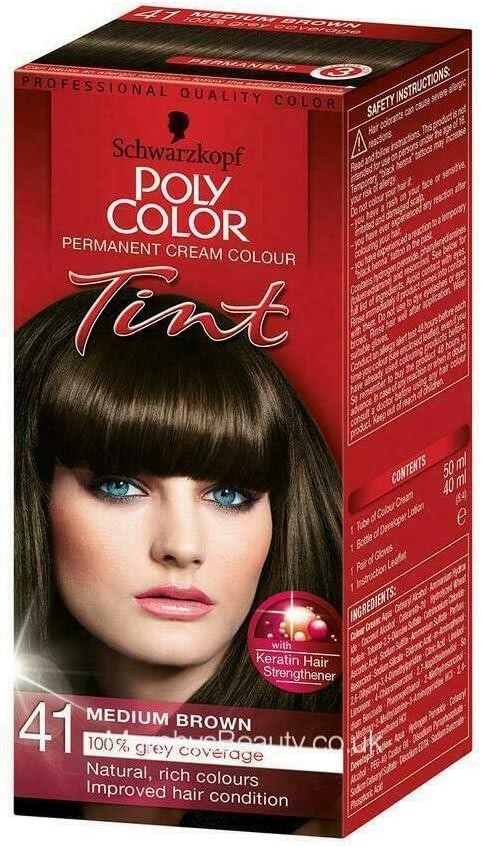 Schwarzkopf Poly Color Hair Colour 41 Medium Brown, Permanent Hair Dye, Keratin