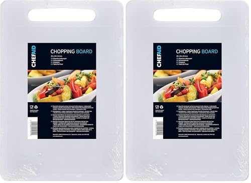Chef Aid White Poly Chopping Board, Multipurpose Anti-Slip Surface, Easy Clean and Dishwasher Safe with Handle, 35 x 24cm, Other Colour Options Available. (Pack of 2)