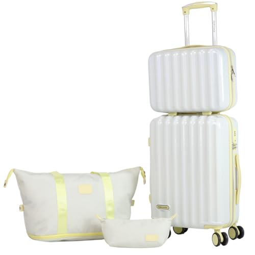 Fergana - White, 4 Piece Polycarbonate Hard Shell Luggage Set, Lightweight Spinner Suitcases with Built in TSA Lock 20", 24", 28" and 14" Beauty Case, Durable Travel Suitcase