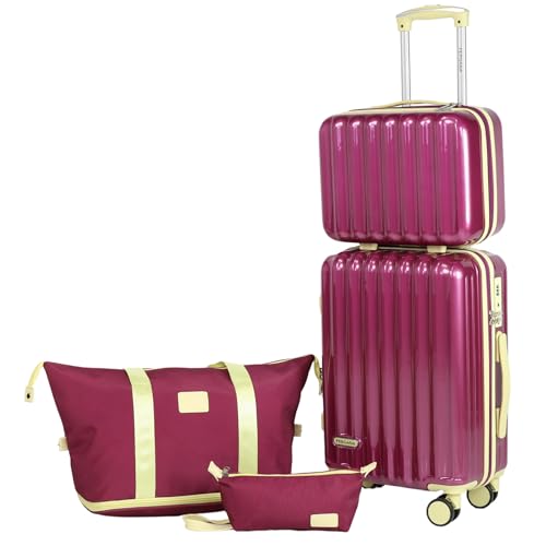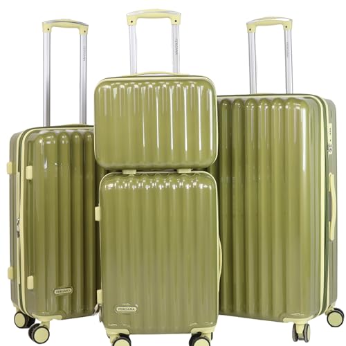 Fergana 4 Piece Polycarbonate Hard Shell Luggage Set, Lightweight Spinner Suitcases with Built in TSA Lock 20", 24", 28" and 14" Beauty Case, Durable Travel Suitcase