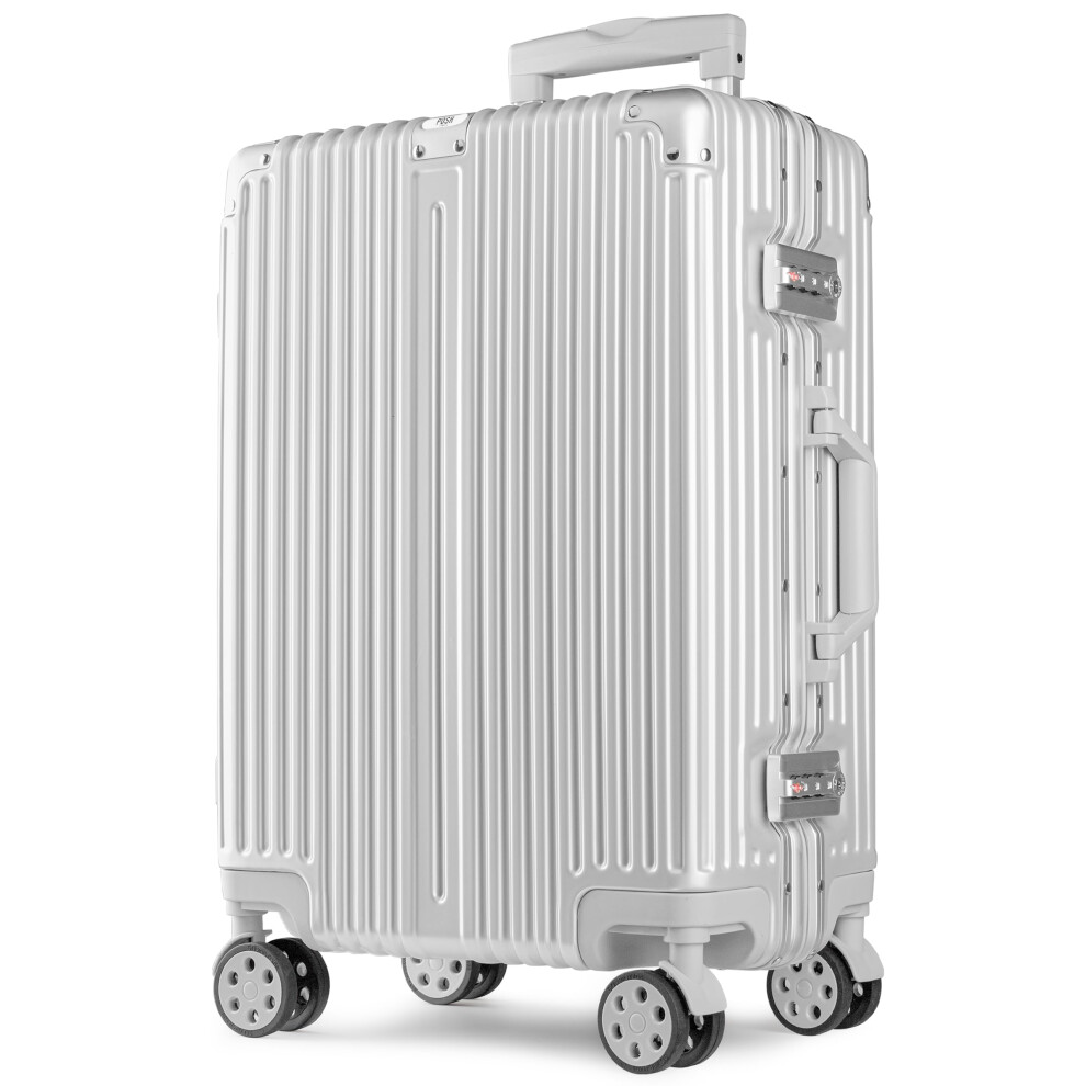 XL Silver Polycarbonate Luggage with Aluminum Frame, TSA Lock, ImpactResistant Hard Shell and 360 Spinner Wheels