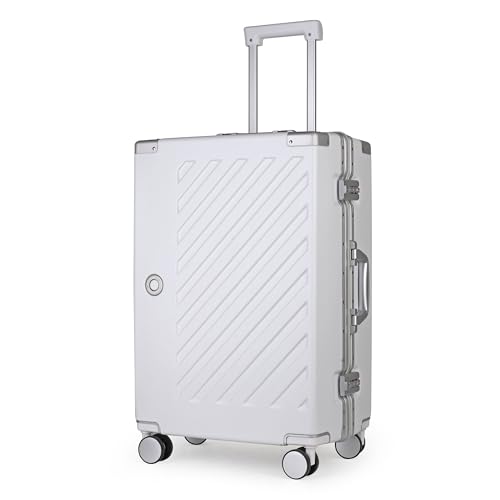 ZHANGshouf Aluminium Frame White Suitcase Zipperless Cabin Luggage Polycarbonate 20Inch Hard Carry on Luggage,White,26in